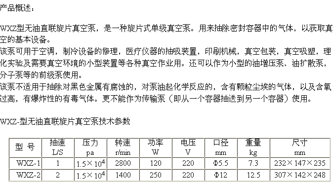 WXZ-型無油直聯(lián)旋片真空泵![]() WXZ-型無油直聯(lián)旋片真空泵 更多信息