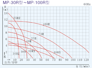 MP型磁力驅(qū)動循環(huán)泵|結(jié)構(gòu)圖尺寸圖MP系列磁力驅(qū)動循環(huán)泵曲線圖: