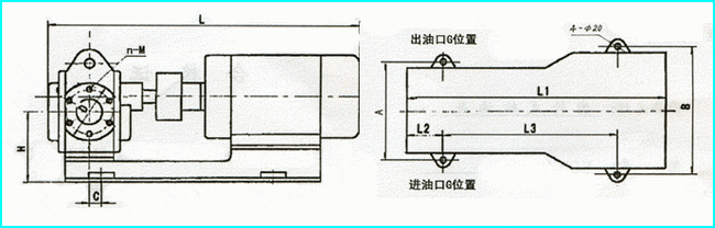 2CY、KCB型齒輪式輸油泵|外形安裝尺寸(2)2CY、KCB齒輪式輸油泵外形安裝尺寸圖: