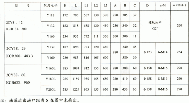 ![]() 2CY、KCB齒輪式輸油泵外形安裝尺寸表: