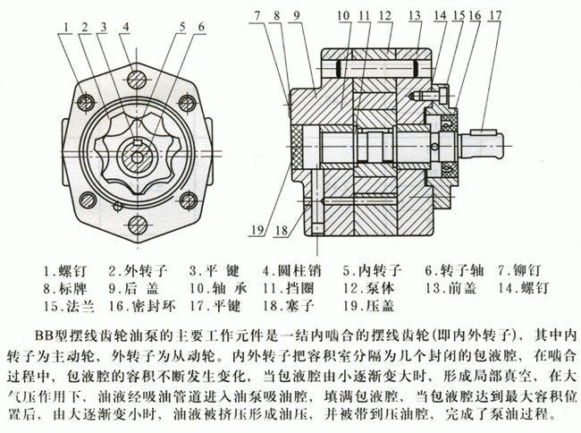 BB、BBG型內嚙合擺線齒輪泵|工作原理BB、BBG型內嚙合擺線齒輪泵工作原理: