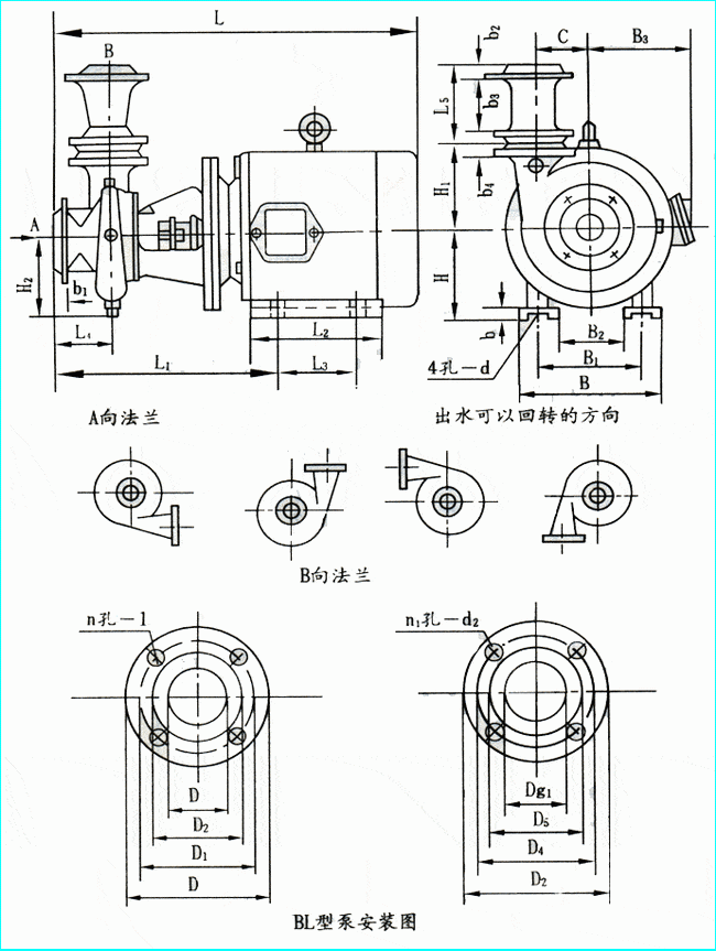 BL型單級臥式離心泵|外形安裝尺寸BL型單級臥式離心泵外形安裝尺寸圖: