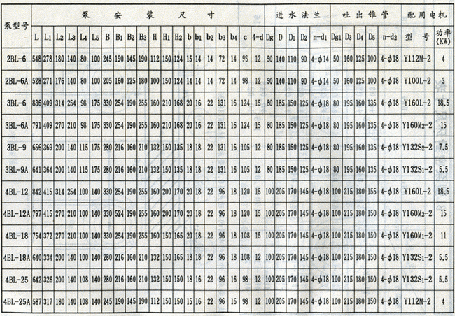 ![]() BL型單級臥式離心泵外形安裝尺寸表: