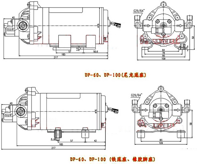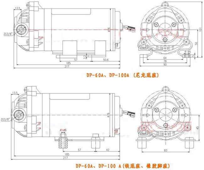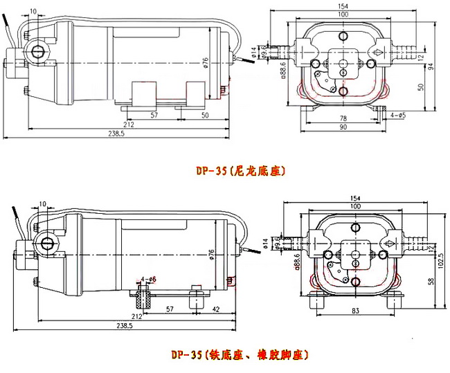 導航:回首頁---當前位置---水泵產品內容頁補充頁 >> DP微型隔膜泵安裝尺寸 |