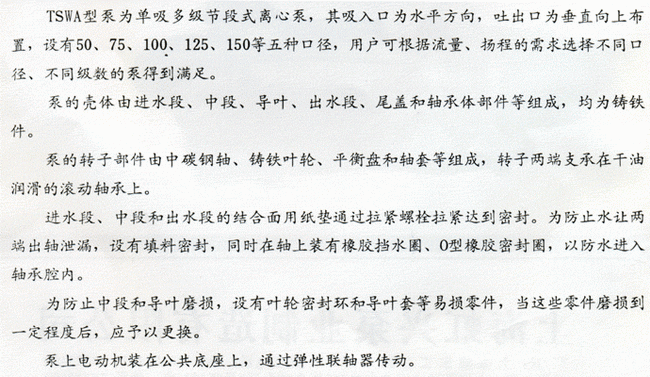 TSWA型臥式多級離心泵|結構的說明![]()