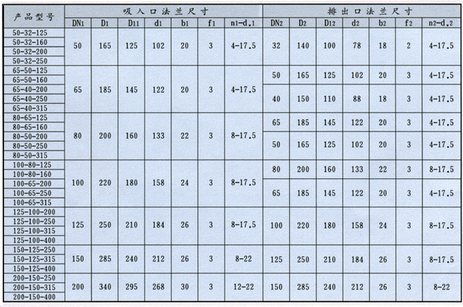 IH型化工泵|法蘭安裝尺寸IH型化工泵法蘭安裝尺寸圖