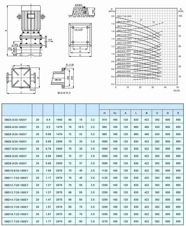 導航:回首頁---當前位置---水泵產品內容頁補充頁 >> XBD立式雙級(多級)消防泵性能參數(2)