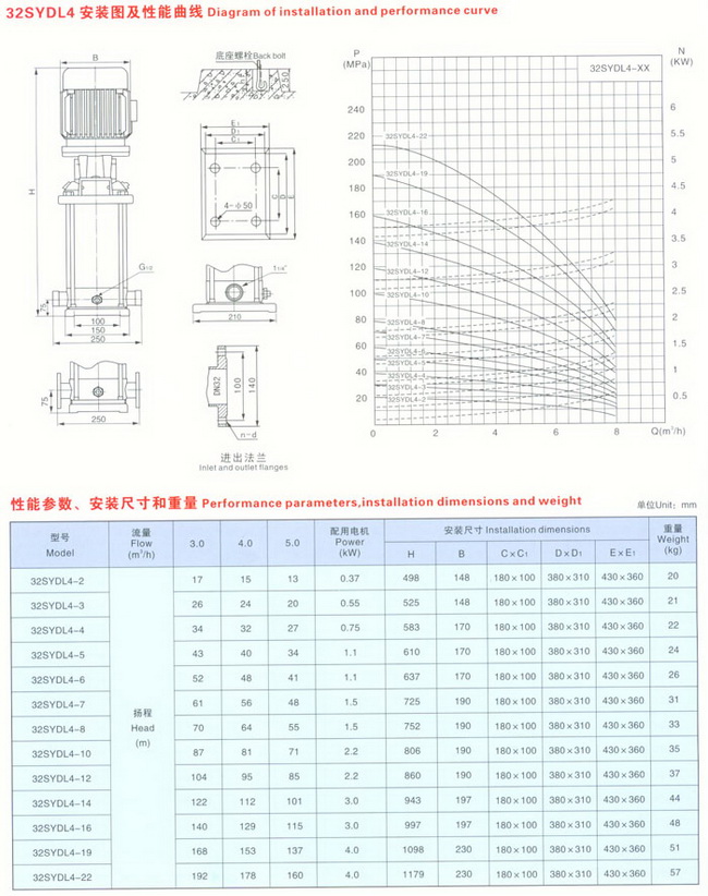 導航:回首頁---當前位置---水泵產品內容頁補充頁 >> SYDL不銹鋼多級離心泵參數四 |