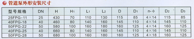 導航:回首頁---當前位置---水泵產品內容頁補充頁 >> FPG耐腐節能管道泵安裝尺寸 |