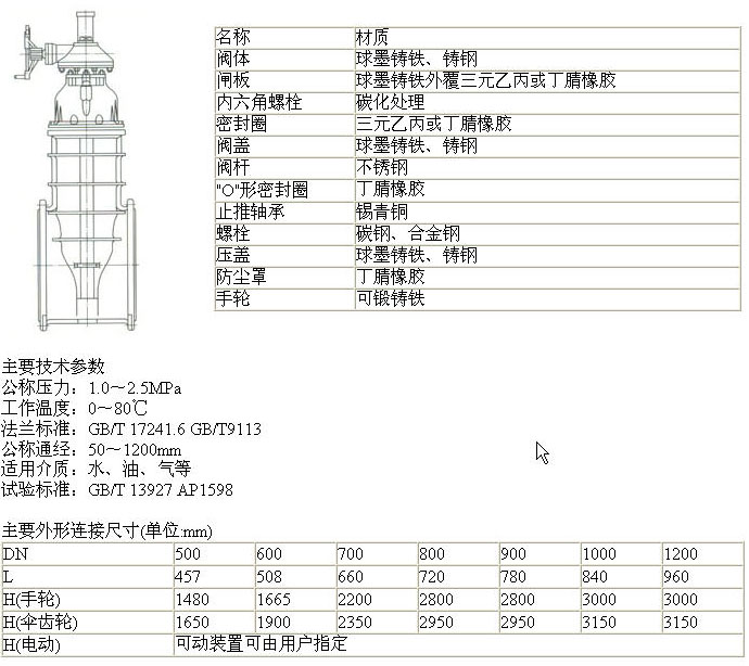 產(chǎn)品概述 RVHX、RVCX、RVEX彈性座封閘閥采用最 的球墨鑄鐵或碳鋼鑄造而成,具有強(qiáng)度高、重量輕,幾何尺寸精確特點(diǎn),閘板具有互換的功能,加裝螺旋傘齒輪省力機(jī)構(gòu),一人可非常輕松自如地開(kāi)關(guān),也可根據(jù)用戶的要求加裝開(kāi)閉指示柱,或電動(dòng)、氣動(dòng)執(zhí)行機(jī)構(gòu)。密封、防銹功能極佳, ,使用壽命長(zhǎng)。可立式或臥式安裝, 應(yīng)用于給排水系統(tǒng)、污水處理系統(tǒng)、市政建設(shè)及礦山、冶金、電廠等行業(yè)。