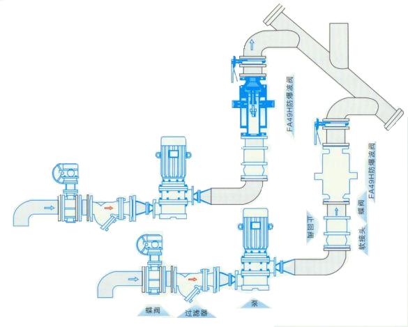 結構特點及用途 防爆波閥門是一種既能消除沖擊又能阻擋沖擊波的安全閥門。它是由多組安全閥構成,其所起到的作用是單一安全閥無法達到的。 防爆波閥門安裝于人防工程給水管道的頭部和人防工程往外輸送介質的出口處,以擋波和消防的方式相結合,防止沖擊波沿著管道進入系統設施工程的內部,從而達消除具有破壞性的沖擊波,起到保護系統設施正常運轉和安全防護的目的。 執行標準 法蘭標準:GB/T 9113 檢驗標準:GB/T 13927-1992 GB 50038-94 典型安裝示意圖 ![]()